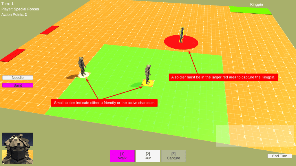 Been working on adding visual character indicators to the playing field. I need them to explain how the capture action works.