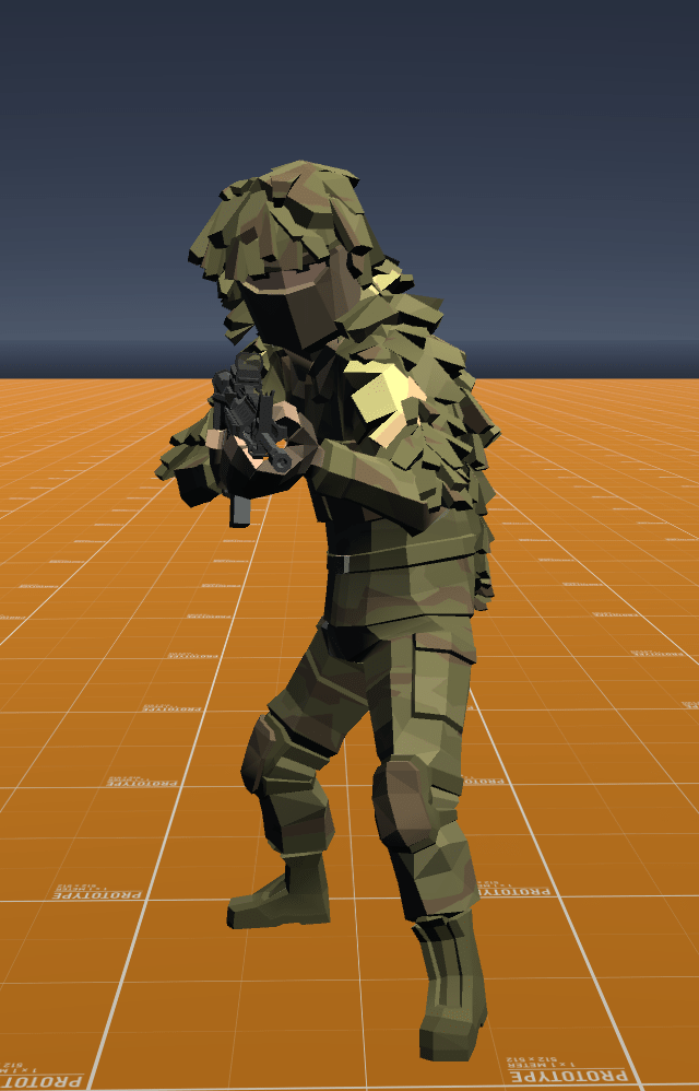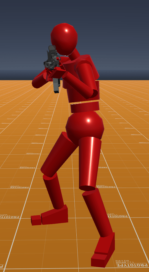 I think the result is acceptable for now, but it’s not the menacing/alert posture that I was hoping for. The root cause for that is the same as with the pistol grip, it’s an incompatibility between the characters and the animations I want to use.