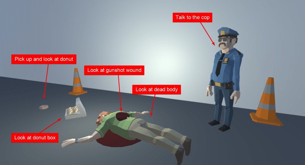 Okay, so my approach for creating a VR adventure prototype is to set up a regular adventure prototype and then adding VR support to it. I want a prototype where you can walk around, look at and interact with things and other characters (NPCs).